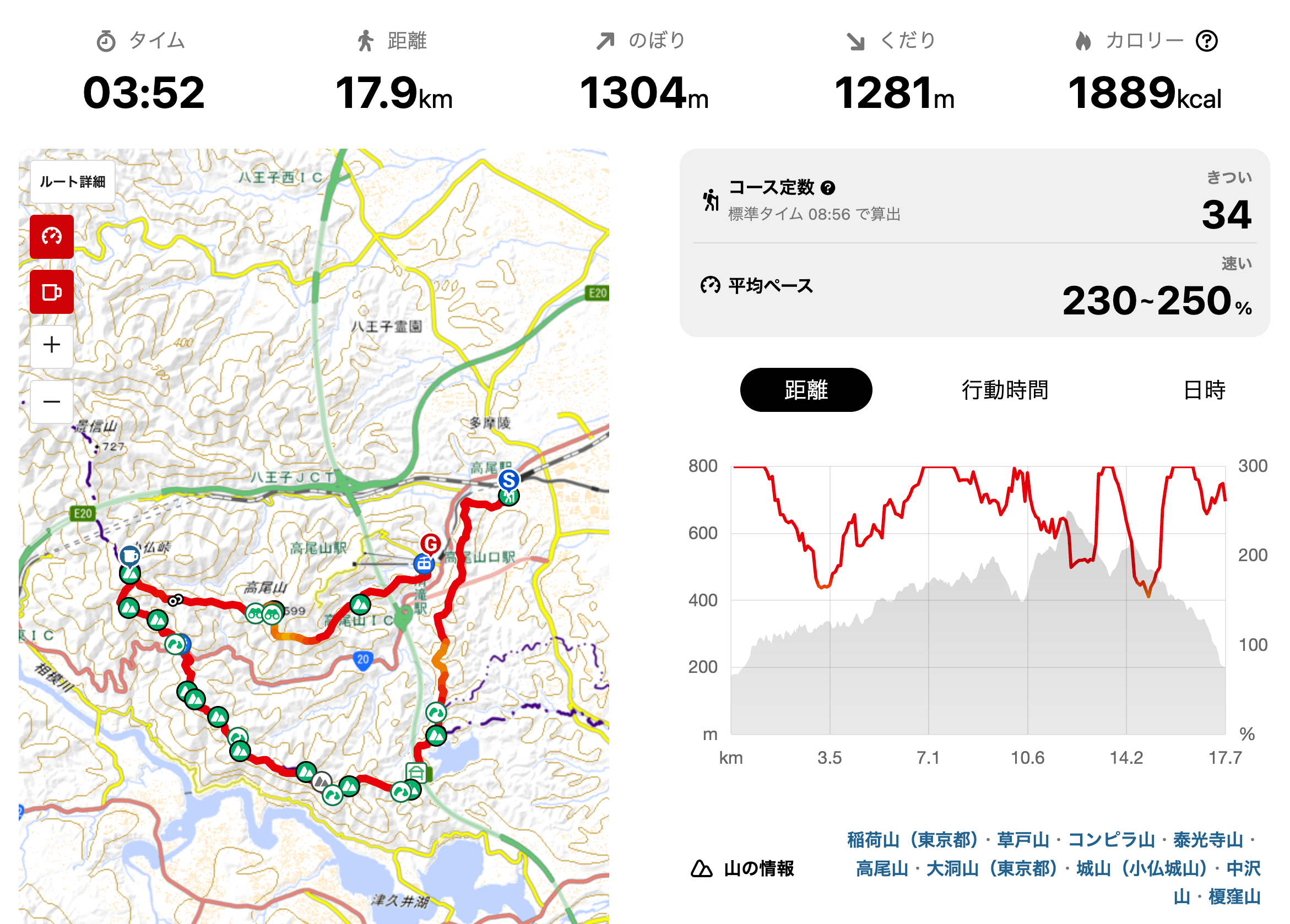 過去にどこかで、トレイルランニングには南高尾山稜がおすすめという情報を見たので、南高尾山稜を中心にコースを組んだ。後半は疲れてしまってもなんとかなるように、高尾山のメジャーな登山道を通ることにした。