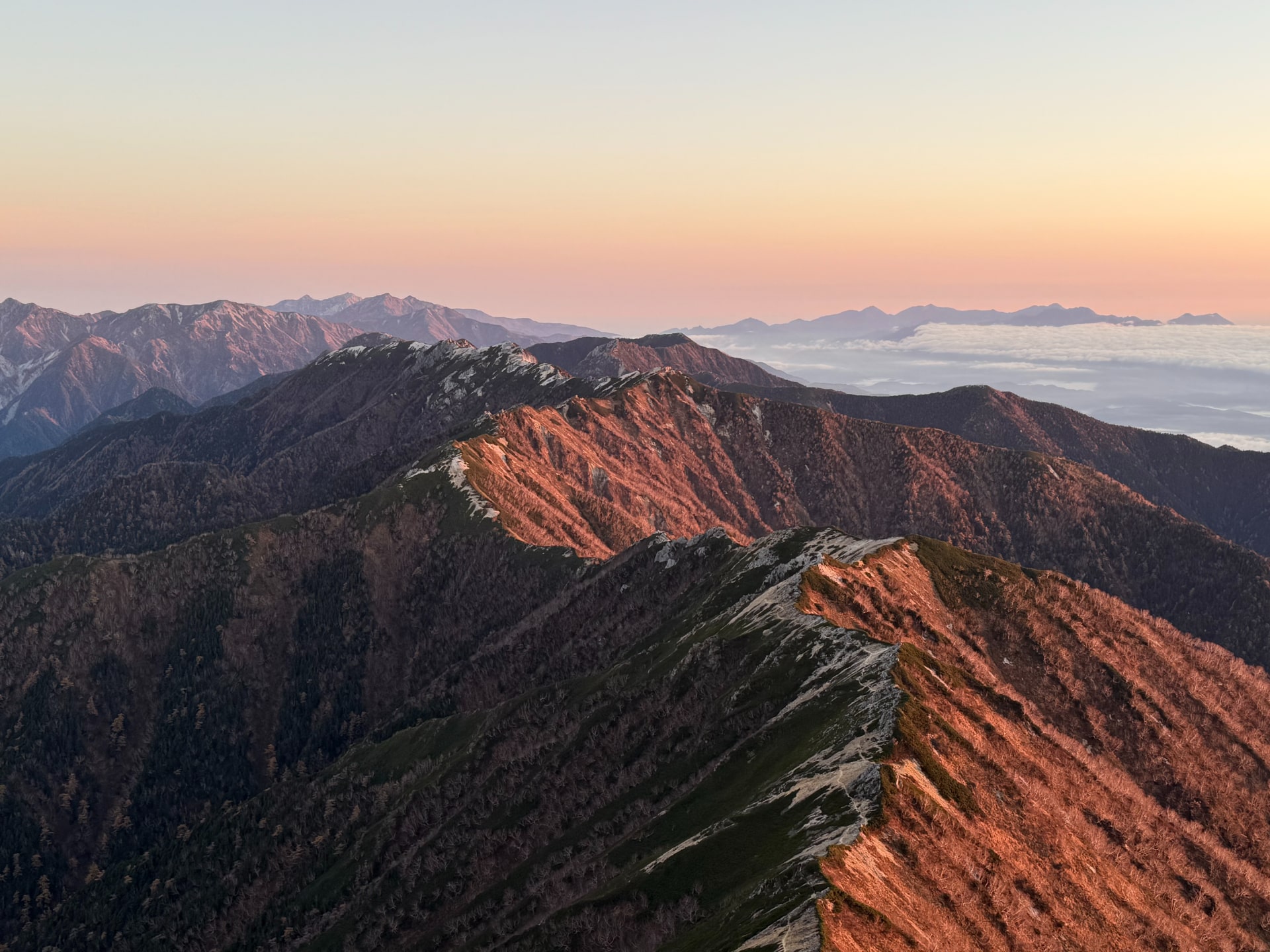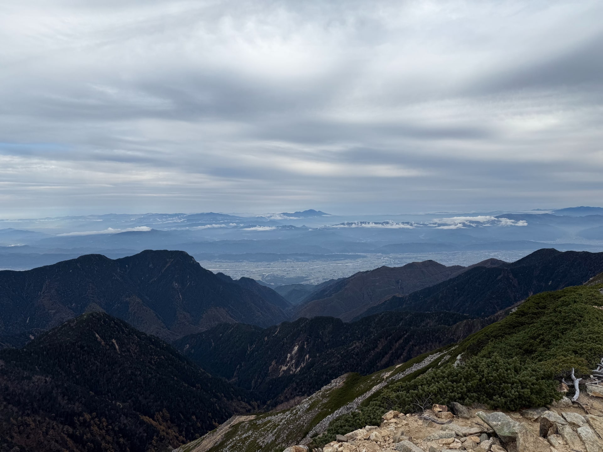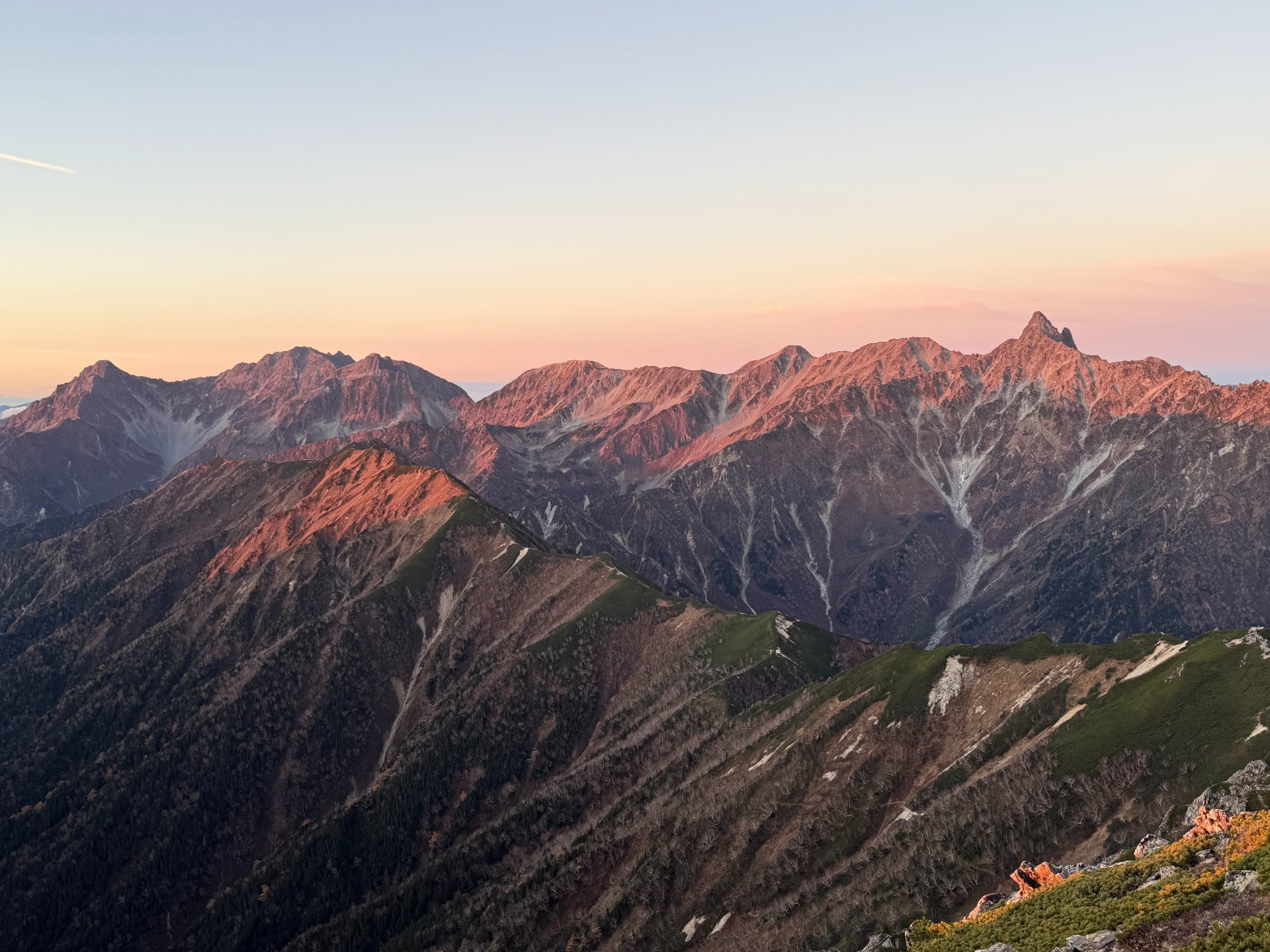 上に辿り着くと、北アルプスの壮大な景色が広がっている。